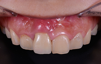 不足している箇所には人口の骨を足してインプラントを埋入いたしました。 また、歯茎もかなり下がっていたため可能な限り改善させました。 |
